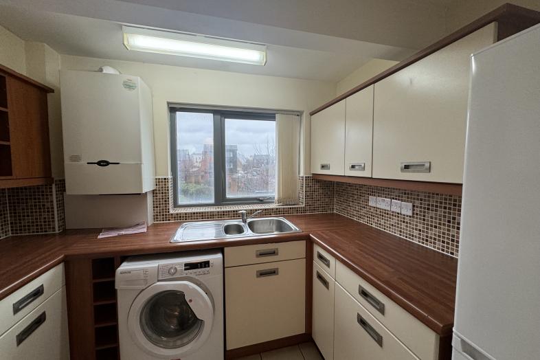 A first floor two bedroom self contained flat benefiting from double glazing, central heating, a driveway and communal gardens.