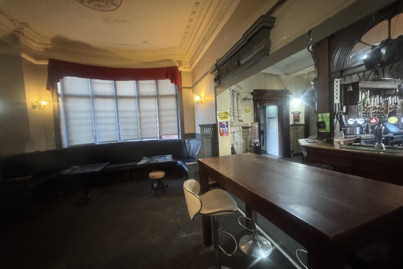Internally, original period features remain, such as Art Nouveau tiling, a classical-style fireplace, and a panelled bar area with glazed screens on the ground floor.