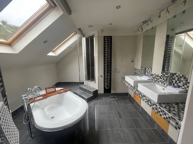 Modern bathroom: The contemporary bathroom is fitted with high-end fixtures and fittings, offering a luxurious space to unwind.